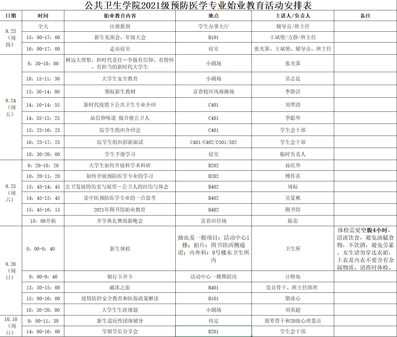 2021级新生始业教育安排表公布