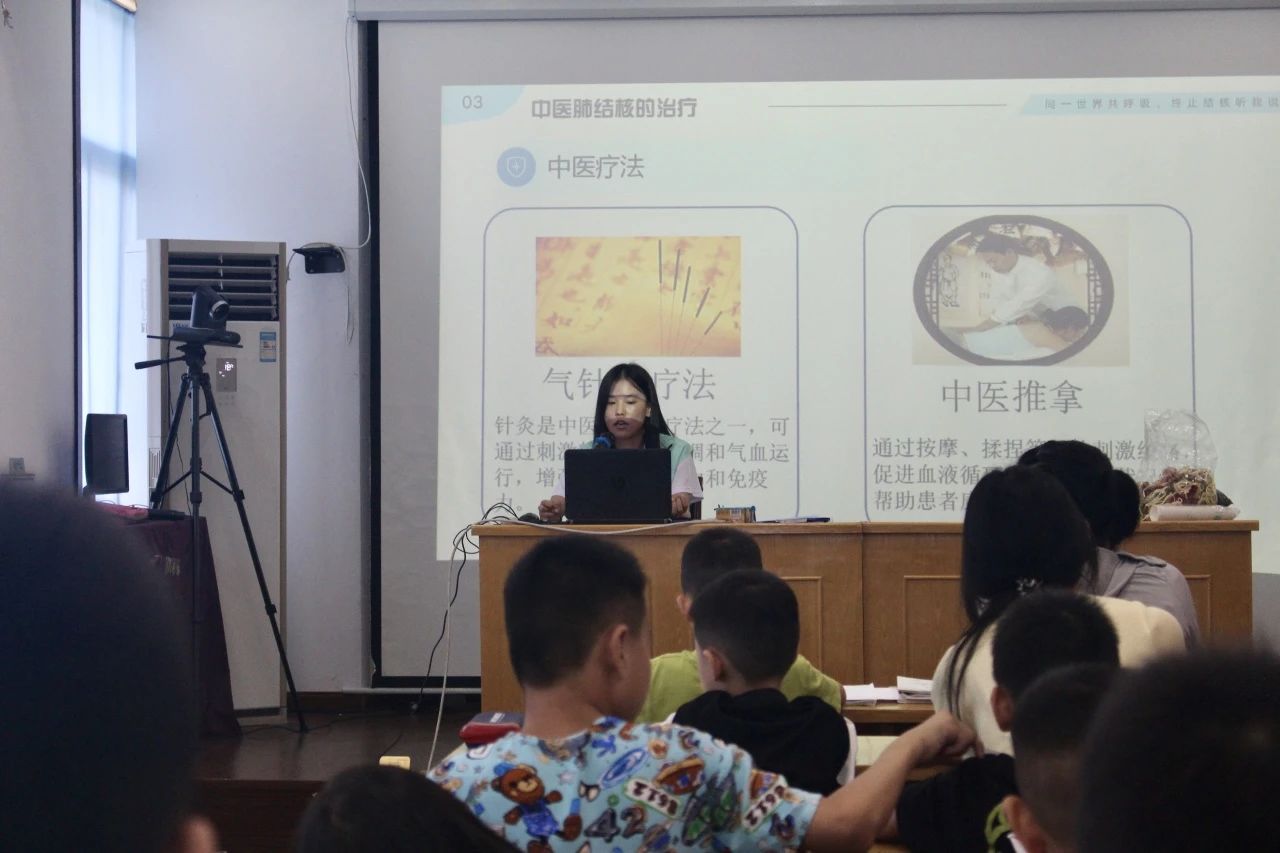 宣讲过程中,实践团成员发挥中医药特色优势,结合预防医学专业背景,就结核病基本知识、预防方法、治疗流程、国家惠民政策等进行了深入浅出地讲解。不仅介绍了多种具有预防结核病功效的中草药,如何通过调整饮食、作息等生活习惯来降低肺结核感染风险,还强调了疫苗接种、环境消毒、佩戴口罩等手段在预防结核病中的重要作用,帮助居民建立起对结核病全面准确的认识。